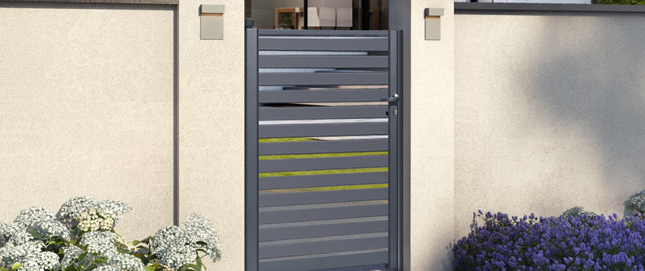 | Poignées | Poignées aluminium laquées à la teinte du portail avec ressort de rappel |