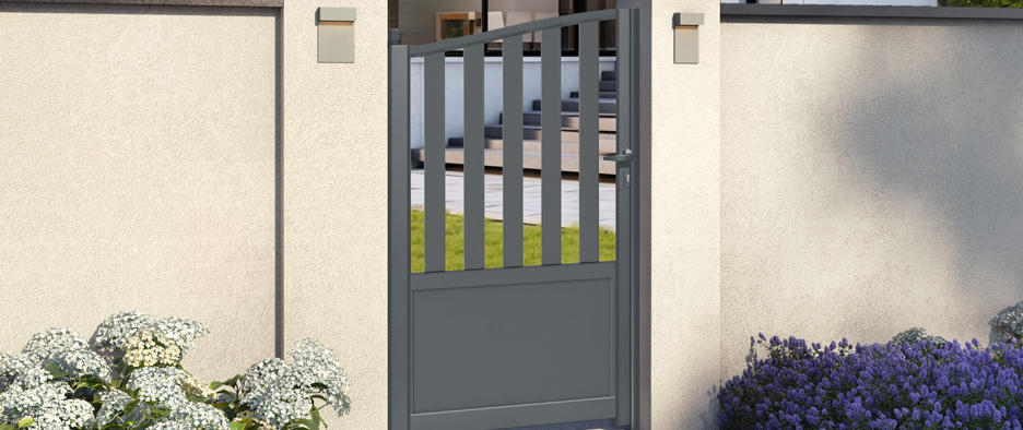 | Poignées | Poignées aluminium laquées à la teinte du portail avec ressort de rappel |